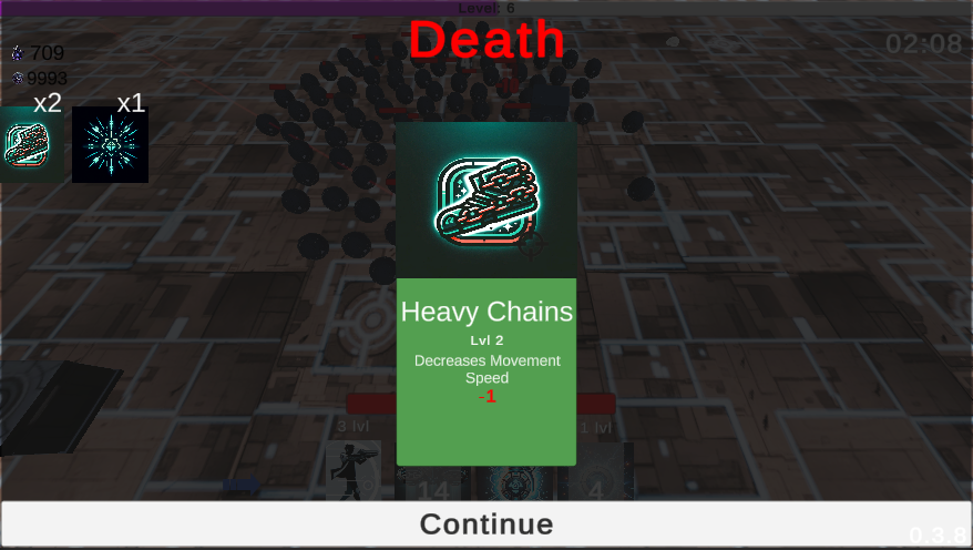 You revive after death, but each revival permanently curses your run. Curses stack and weaken your upgrades or stats. -